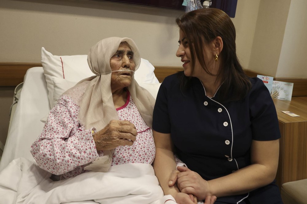 Gaziantep’te yaşayan ve daha önce beyin kanaması geçiren, düşmeye bağlı kalça kırığı yaşayan, 6 Şubat 2023’teki depremde enkaz altında kalan 111 yaşındaki Hatice Düzer, zatürreyi de gördüğü tedaviyle yenerek sağlığına kavuşmasını pasta keserek kutladı.